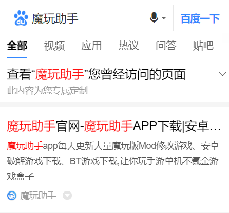 2.解决方法:到百度搜索魔玩助手软件并进行下载