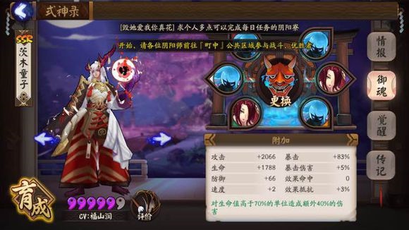 上面的内容是茨木童子的技能和属性上的详细的介绍,还有关于茨木童子的阵容搭配方式,作为单体攻击中的战斗机,在实力上是不可小觑的,玩家需要对这个式神有着足够的了解,才可以去更好的发挥出这个角色的强大实力!